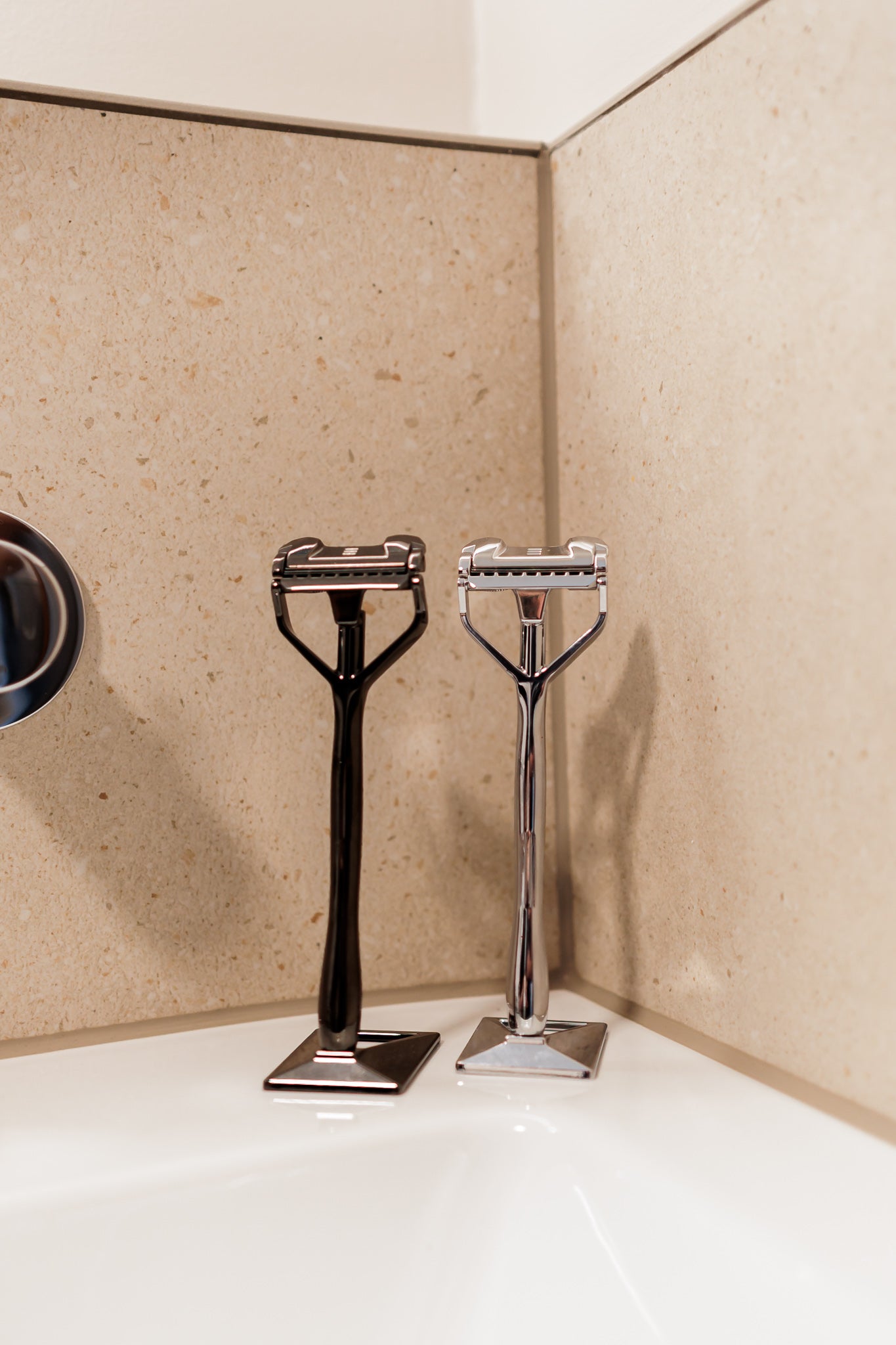• Zwei SHAVENT Original Rasierer (wählbar: Chrome, Black Oak)